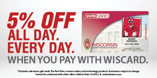 Wiscard 5% Off. All Day, Every Day. 5% OFF when you pay with your Wiscard. Excludes sale items, gift